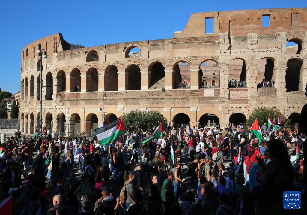 10月4日,在意大利罗马,游行队伍向斗兽场行进。