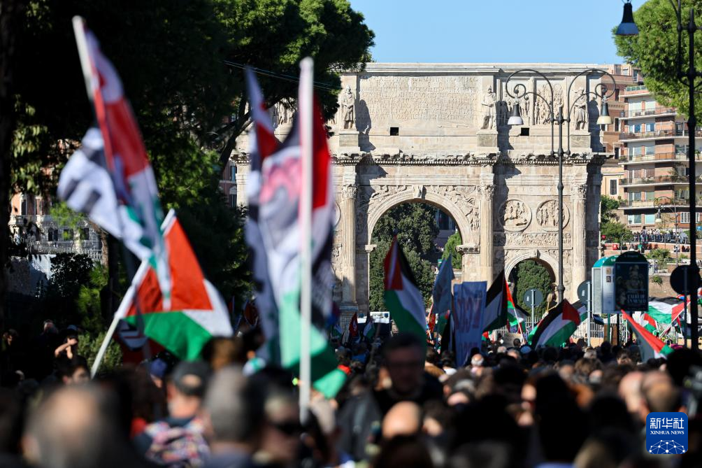 10月4日,在意大利罗马,游行队伍经过君士坦丁凯旋门。