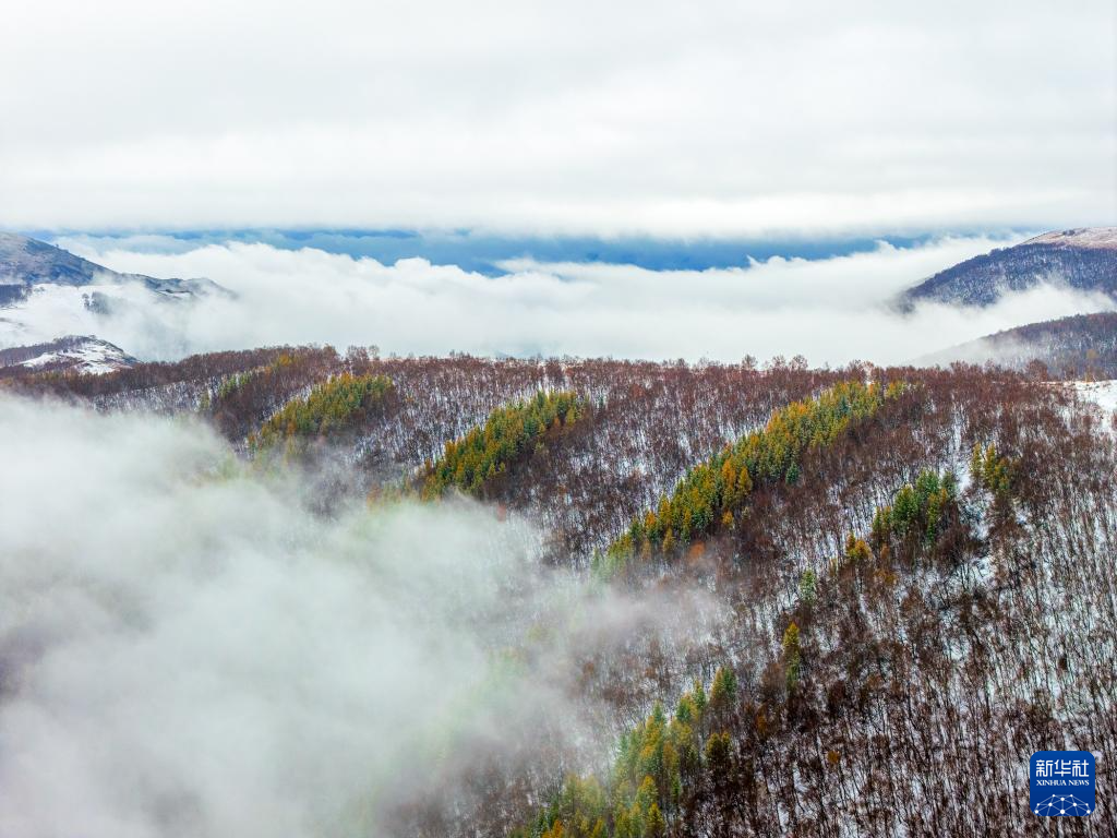 这是10月6日拍摄的克什克腾旗黄岗梁雪景(无人机照片)。