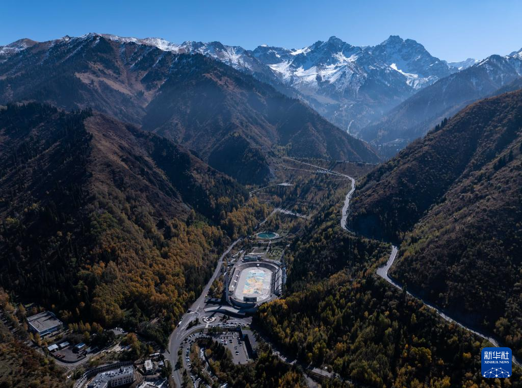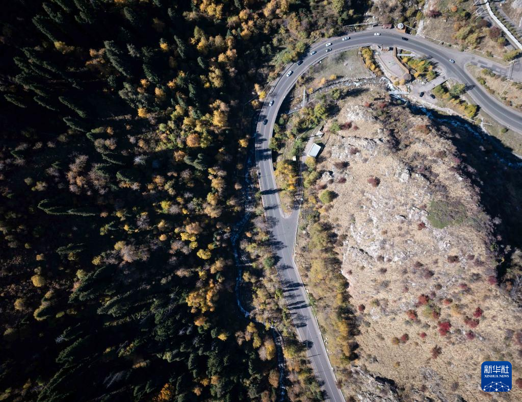 这是10月6日在哈萨克斯坦阿拉木图市郊拍摄的山区风光(无人机照片)。
