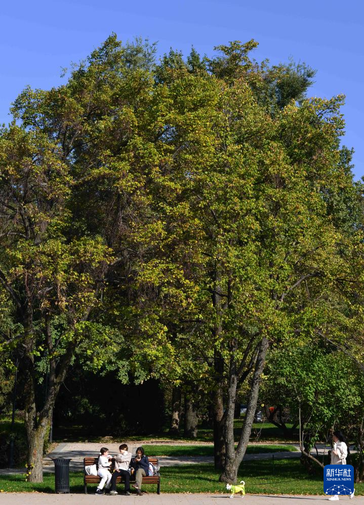 进入秋季,哈萨克斯坦第一大城市阿拉木图秋高气爽,许多市民来到户外享受秋日。