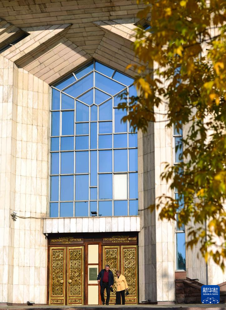 10月6日,人们在位于阿拉木图的哈萨克斯坦中央国家博物馆门前休闲。