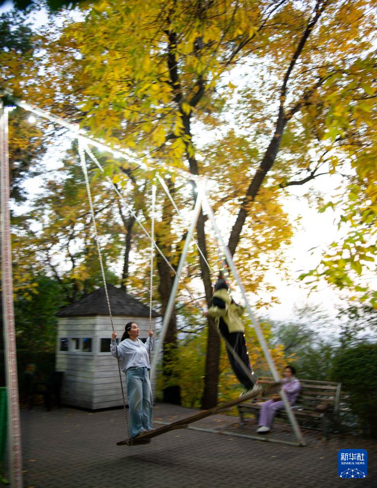 10月6日,人们在哈萨克斯坦阿拉木图的一处公园休闲。