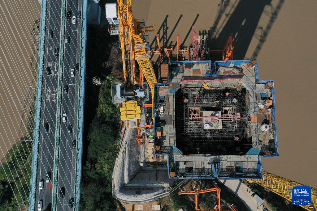 10月6日,建设者在甬舟铁路桃夭门公铁两用大桥6号主塔进行施工作业。
