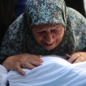 2023年10月21日,在加沙地带南部地区,一名妇女为逝去的亲友哭泣。