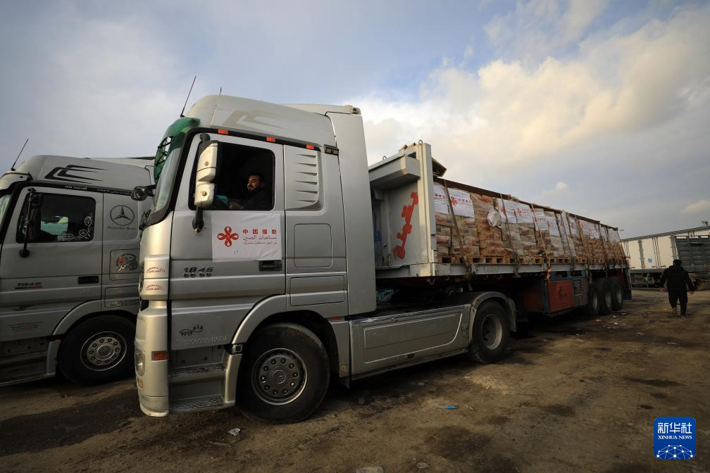 2023年12月17日,载有中国援助的人道主义物资的货车抵达凯雷姆沙洛姆口岸加沙地带一侧。
