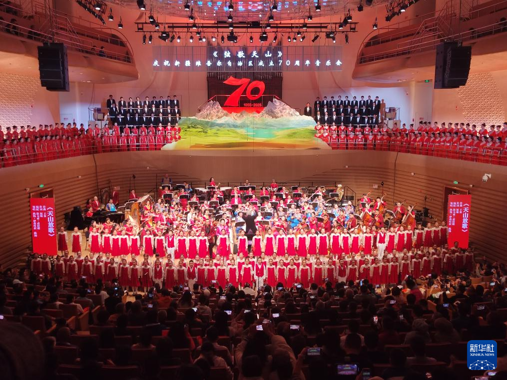 10月7日,演员在音乐会现场演唱《天山颂歌》。