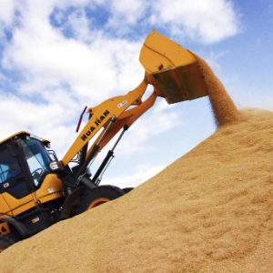 10月8日,在北大荒集团黑龙江绥滨农场有限公司东井管理区粮食晒场,工人操作机械堆放水稻。