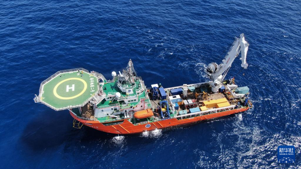 “海洋地质二号”科考船搭载“海马”号深海遥控潜水器在南海北部进行“源火”采集(9月18日摄)。