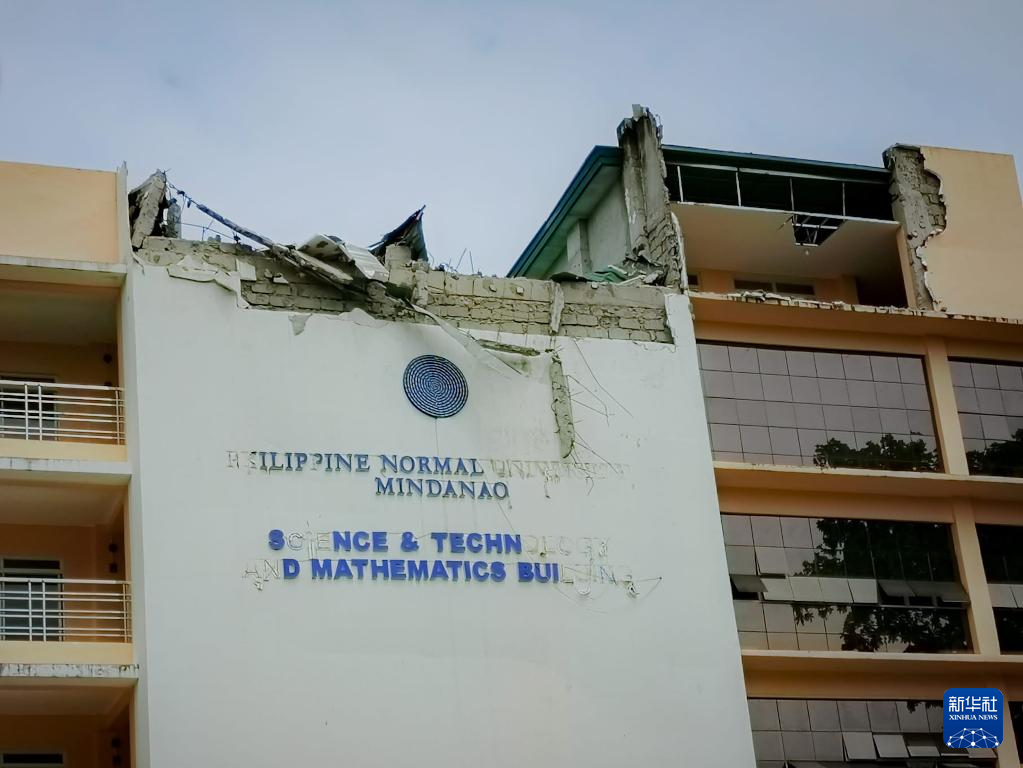 10月10日,在菲律宾南阿古桑省一所大学,教学楼在地震中受损。