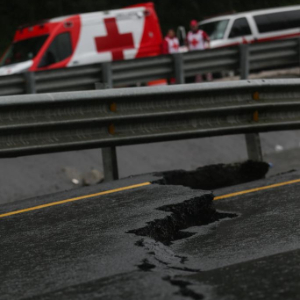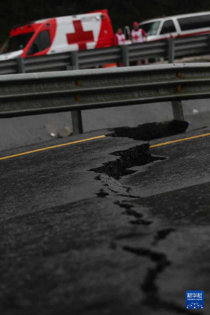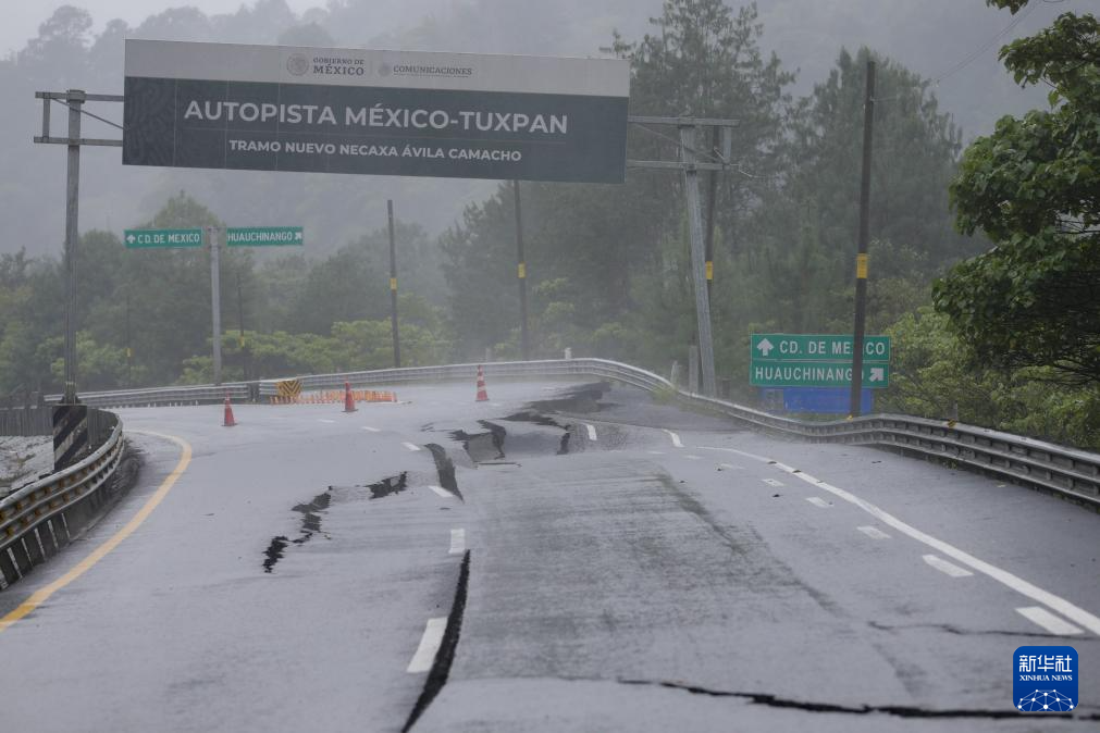这是10月11日拍摄的墨西哥普埃布拉州瓦乌奇南戈市一段因降雨损坏的高速公路。
