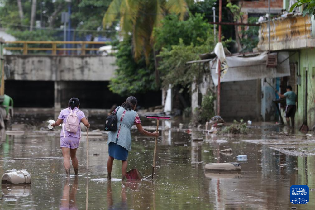 10月11日,在墨西哥韦拉克鲁斯州波萨里卡,人们清理庭院。