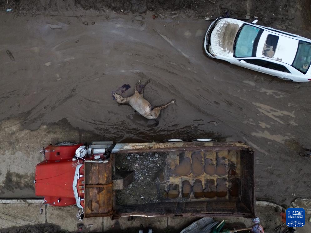 这是10月11日在墨西哥韦拉克鲁斯州波萨里卡拍摄的强降雨过后的街景(无人机照片)。