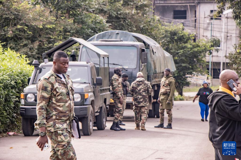 10月12日,在喀麦隆西南大区首府布埃亚,喀麦隆安全部队在投票站附近巡逻。
