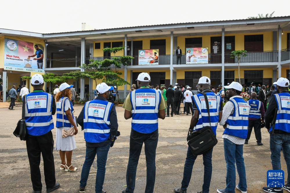 10月12日,在喀麦隆首都雅温得,国内外选举观察员在总统选举期间在投票站监督选举活动。