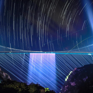 夜晚,新的世界第一高桥——贵州花江峡谷大桥呈现出不同光影美景,吸引游客前来观赏。