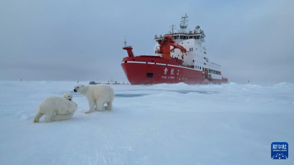 8月30日夜,在距离中国第15次北冰洋科学考察队长期冰站作业结束还剩一天时,一只北极熊妈妈带着两只熊宝宝出现在了考察队员搭乘的“雪龙2”号极地科考破冰船船边。