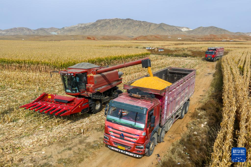 金秋时节,内蒙古巴彦淖尔市乌拉特前旗的玉米迎来丰收,当地广泛采用机械化收割与半自动化烘干技术,保障秋收效率。