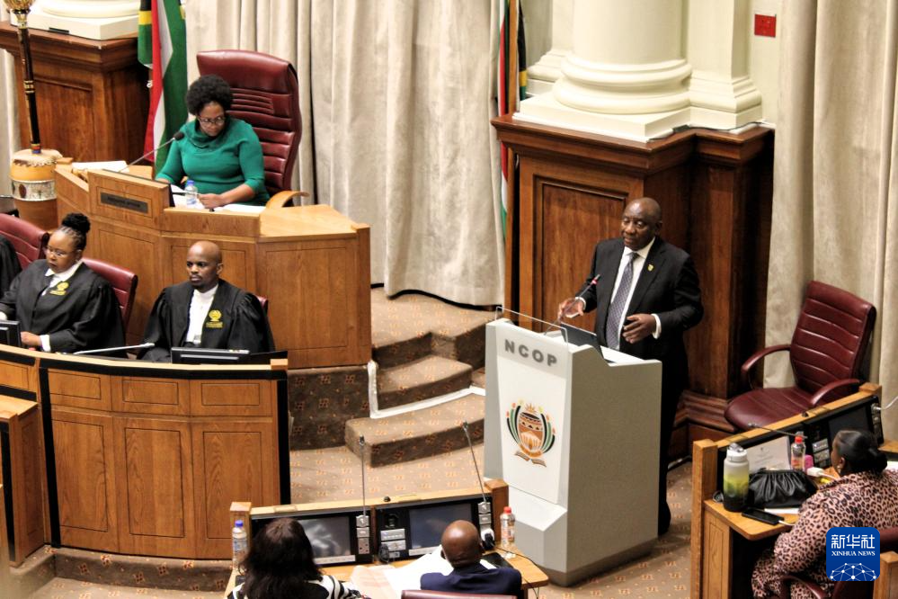 10月14日,在南非开普敦,南非总统拉马福萨在南非全国省级事务委员会(即议会上院)回答议员提问。
