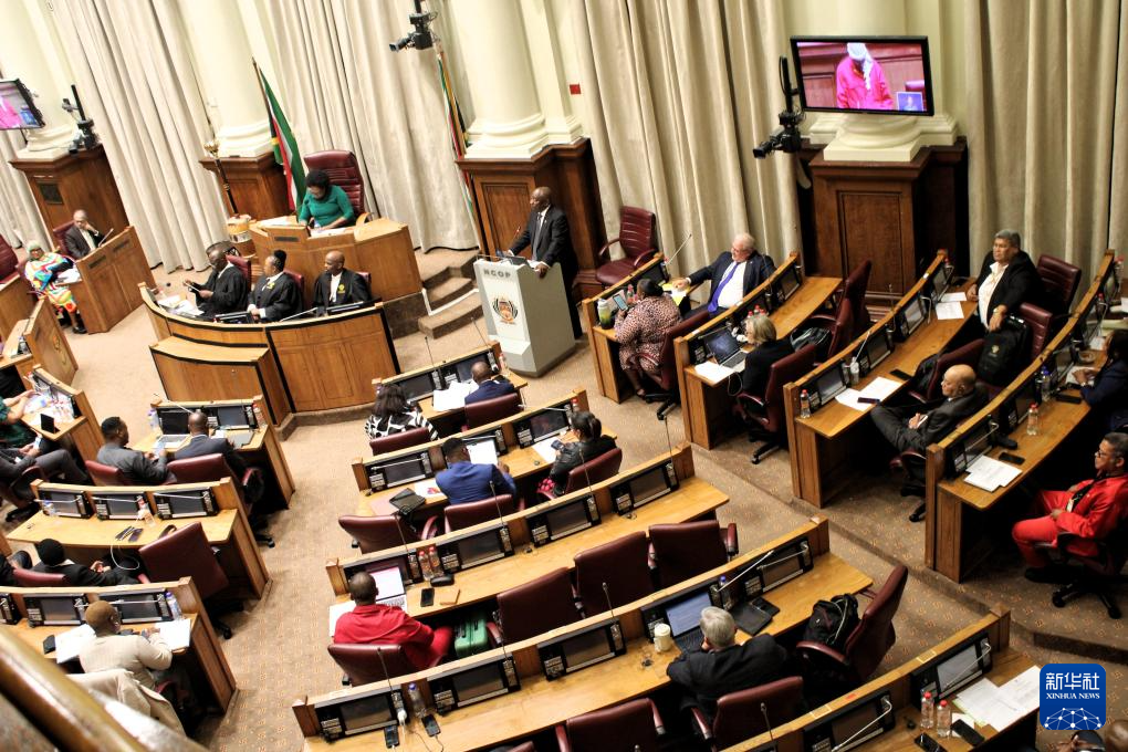 10月14日,在南非开普敦,南非总统拉马福萨(右二)在南非全国省级事务委员会(即议会上院)回答议员提问。