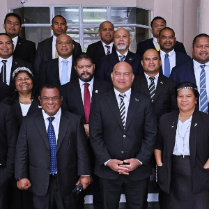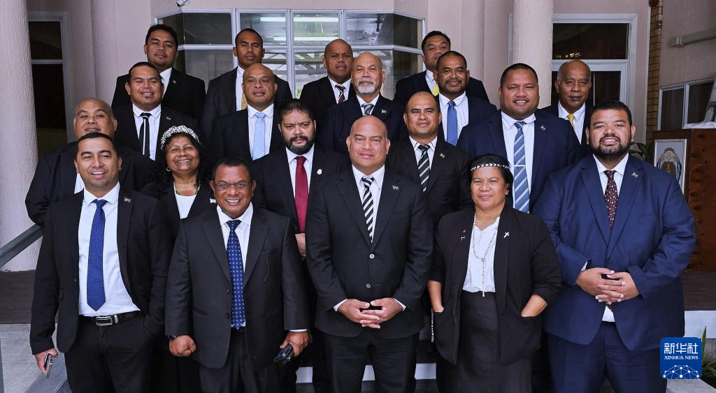 10月14日,瑙鲁现任总统阿迪昂(前中)与第25届瑙鲁议会的议员合影。