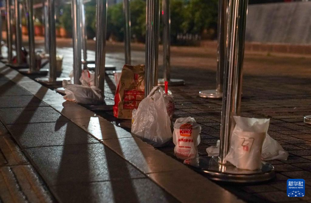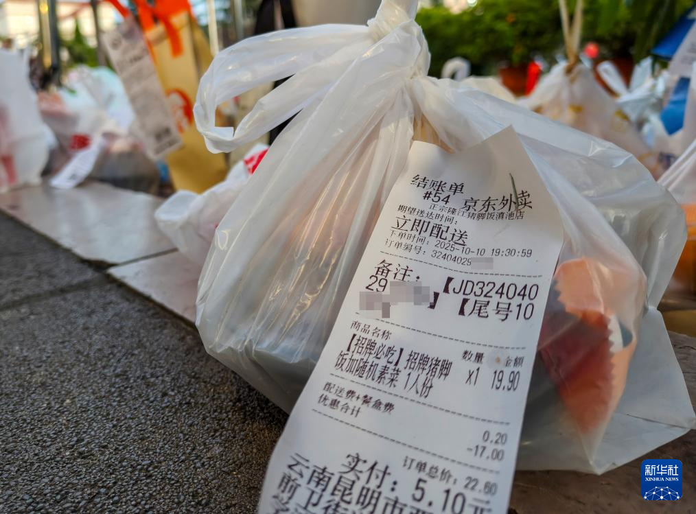 在云南昆明某大学门口堆积的外卖(10月11日摄)。其中一些外卖数日无人领取,不仅造成粮食浪费,还易腐坏变味,影响校园环境。