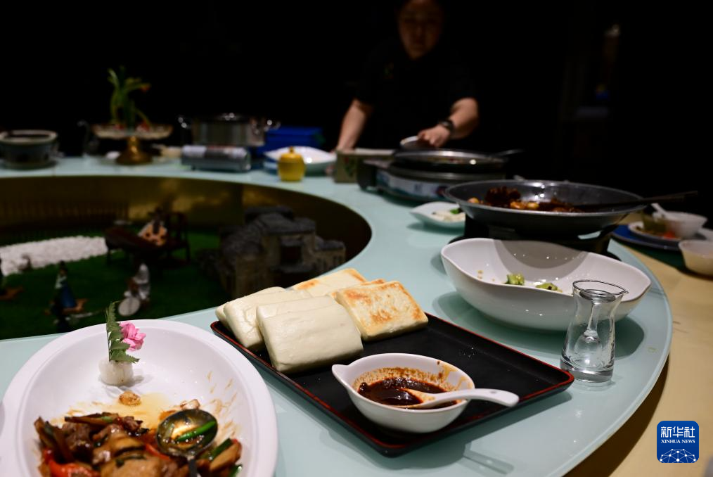 10月14日,在安徽合肥一家饭店内,服务员在顾客走后清理餐桌。桌上剩余的部分主食和菜品未被打包。