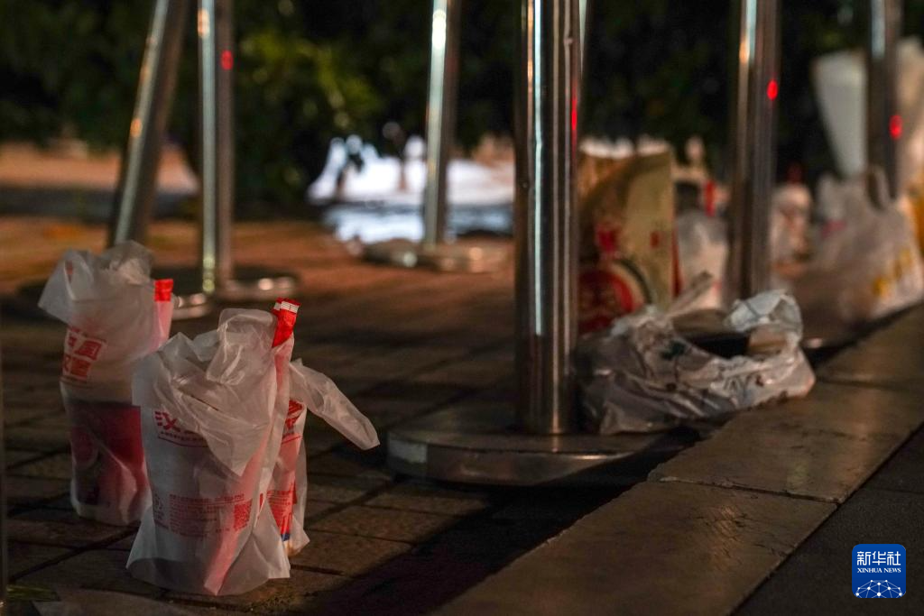 10月10日晚,在云南昆明某夜市,多个垃圾桶被塞满,残羹剩饭溢出,不仅造成食物浪费,也对周边环境卫生带来影响。