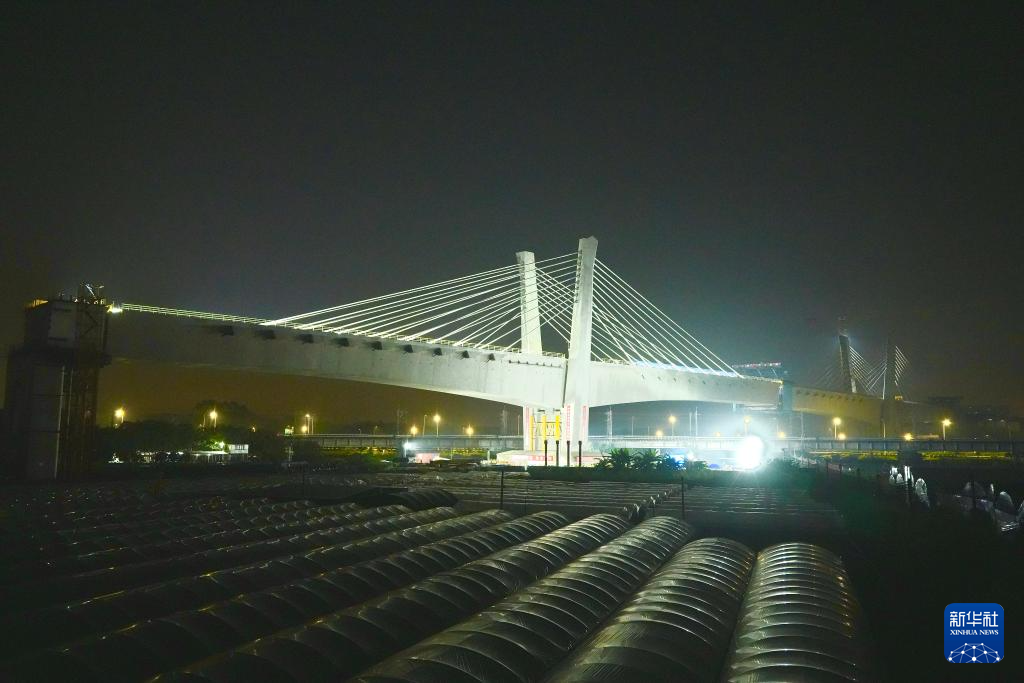 10月16日,由中铁广州工程局承建的广佛西环城际铁路官窑西南涌特大桥斜拉桥完成“空中转体”,实现对接。该斜拉桥跨越广珠铁路、广佛肇高速公路,其28号转体主墩的转体重量约3.1万吨,转体角度约50.7度,此次成功转体标志着项目控制性节点取得重大突破,为全线桥梁贯通奠定了坚实基础。