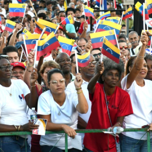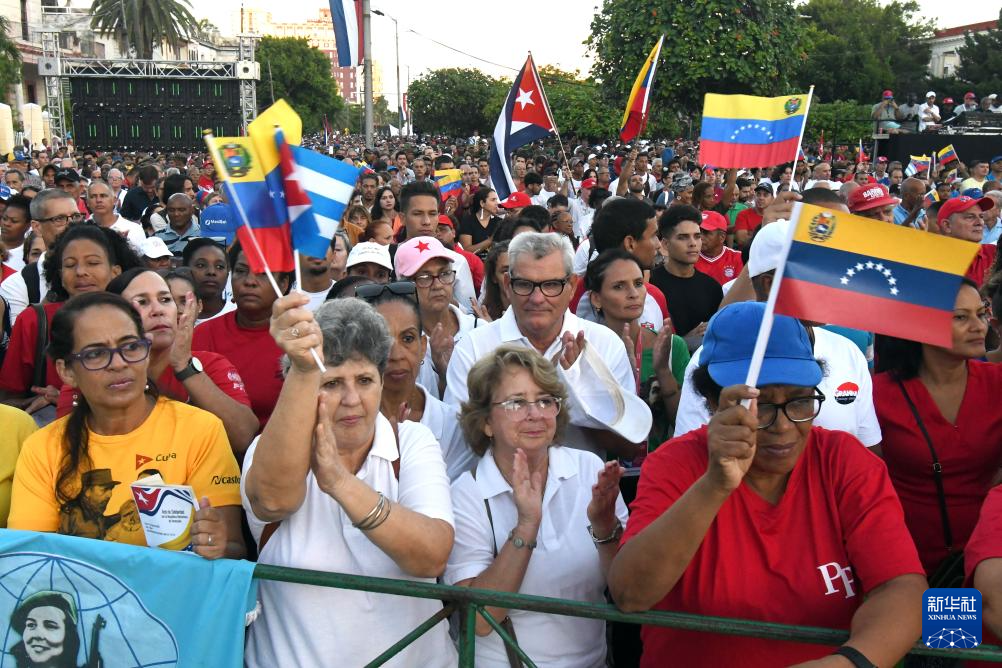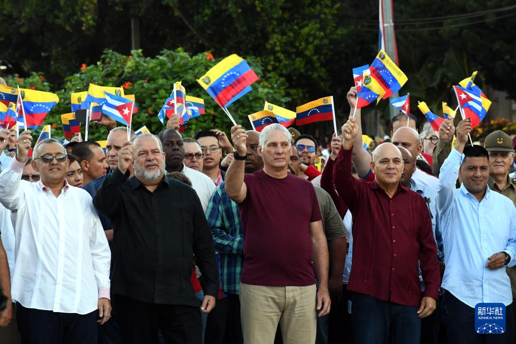 当天,5万多古巴民众聚集在首都哈瓦那总统大道的西蒙·玻利瓦尔雕像前,抗议美国军事威胁委内瑞拉,表达对委内瑞拉人民和政府的坚定支持。