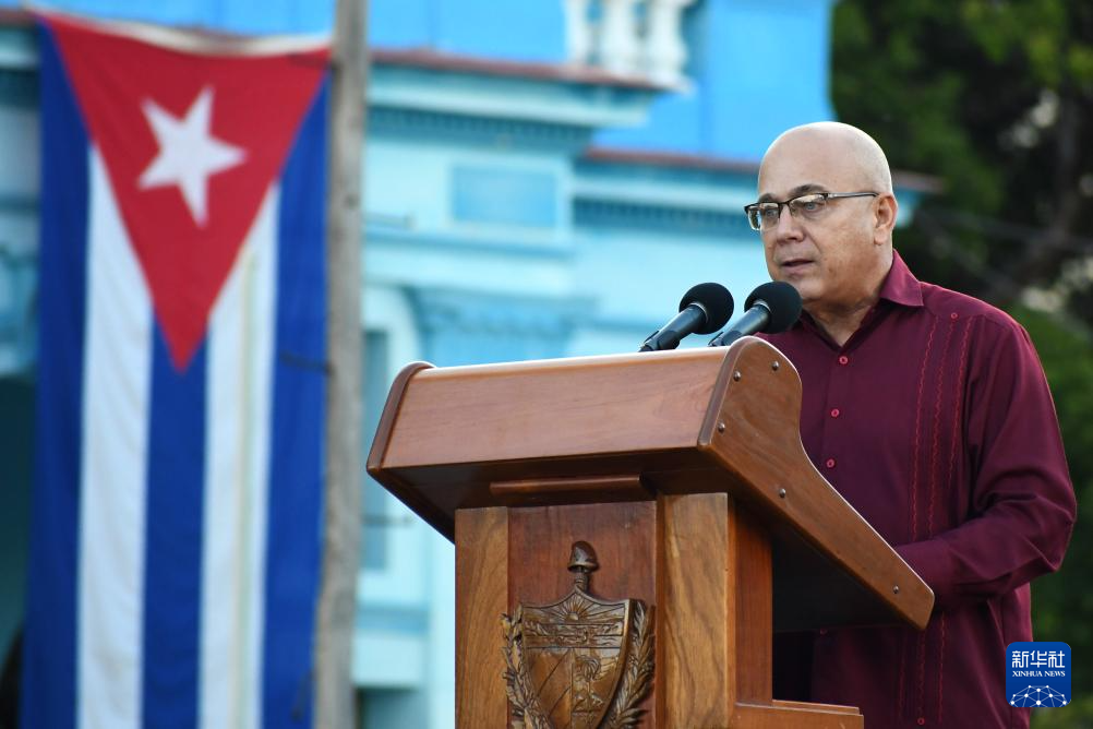 10月17日,在古巴首都哈瓦那,古共中央政治局委员、中央组织书记莫拉莱斯在集会上发表讲话。