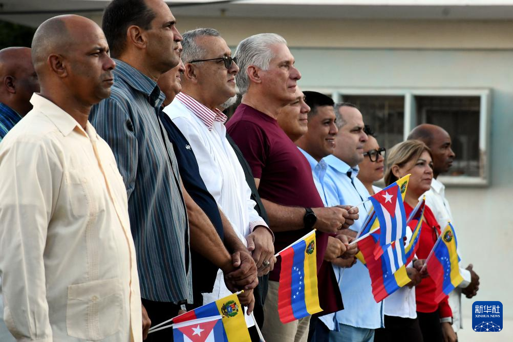 10月17日,在古巴首都哈瓦那,古共中央第一书记、古巴国家主席迪亚斯-卡内尔(前排中)等古巴党政领导人以及委内瑞拉代表出席集会。