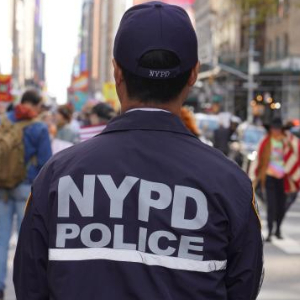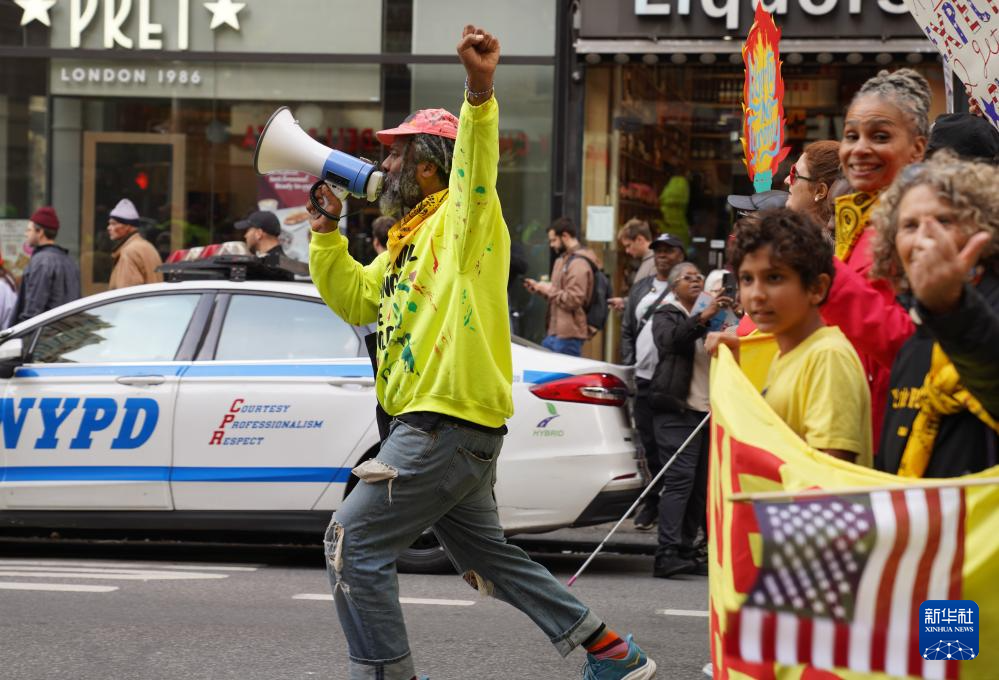 10月18日,在美国纽约,警察在示威游行活动现场执勤。