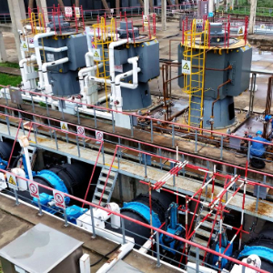 10月20日,在河南省南阳热电公司循环水主管网处,技术工人对设备进行调试、巡检(无人机照片)。