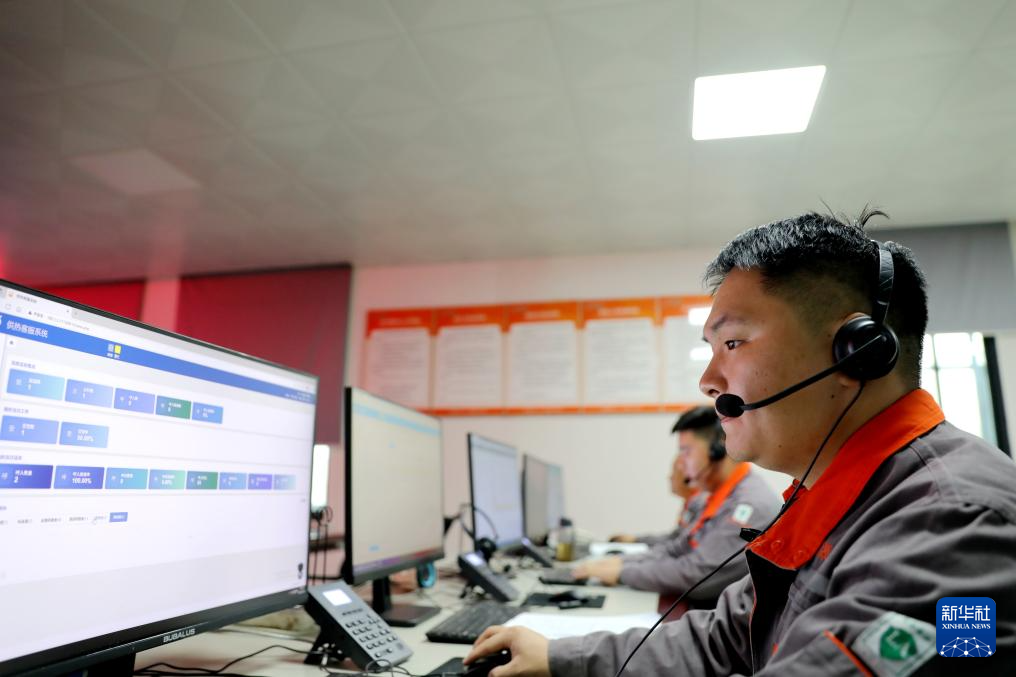 10月20日,河南省济源市城市供热调度中心的工作人员在接听供暖热线。