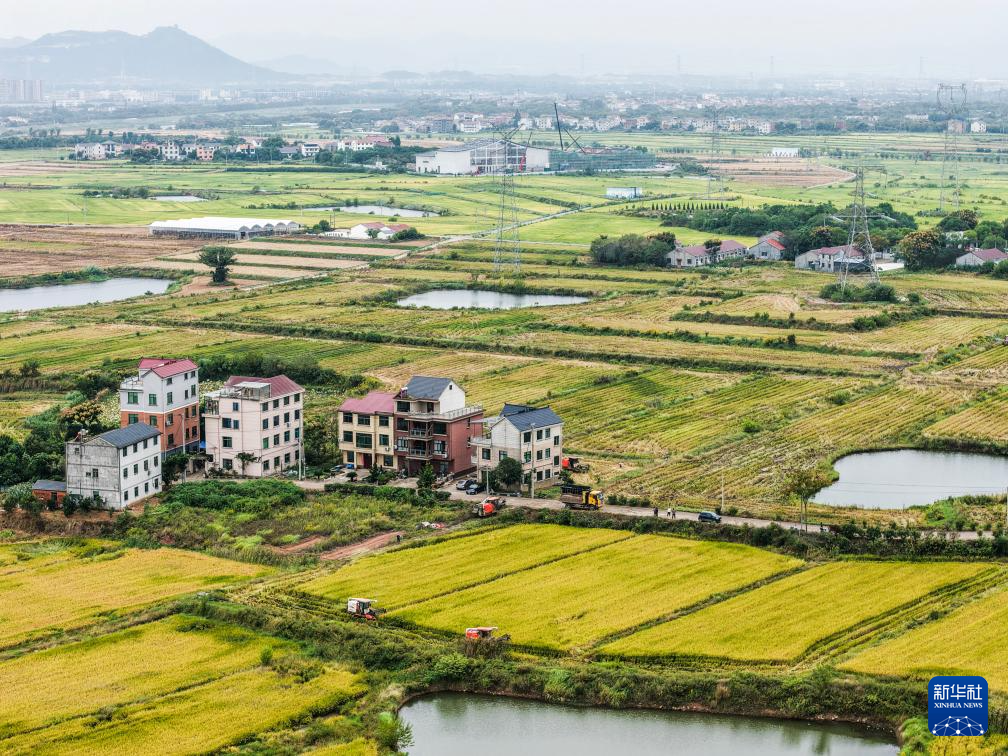 金秋时节,浙江省金华市金东区塘雅镇万亩良田示范区的水稻迎来集中收割期,收割机在稻田来回穿梭,抢抓农时收割水稻。塘雅镇作为金东区最早开展“多田套合”试点的片区,累计建成永久基本农田1万多亩,从育种到收割全程实现机械化、智能化。