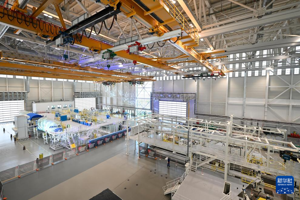 10月22日在空客二线项目总装厂房拍摄的一架待总装飞机。