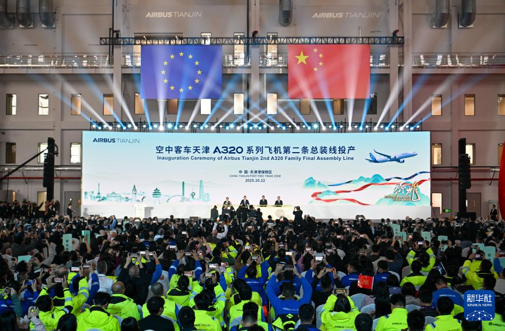 当日,空中客车公司在中国也是亚洲的第二条A320系列飞机总装线在天津投产。