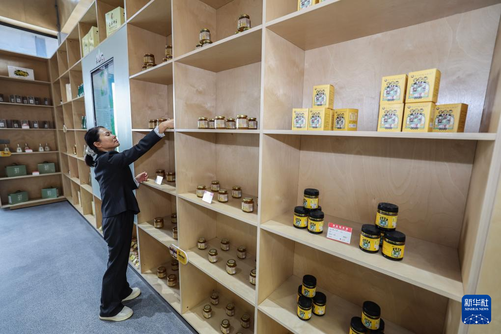 10月22日拍摄的位于金华市金东区赤松镇北山口村的金华佛手农林服务中心内的商品展陈中心,展示和销售包括佛手膏、佛手茶、佛手酒、佛手蜜饯等在内的各类佛手衍生产品。
