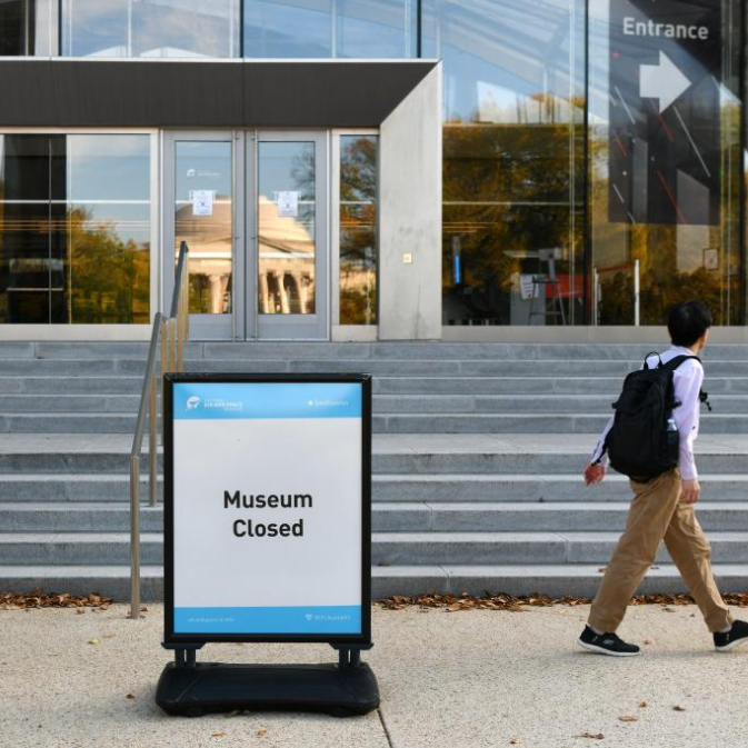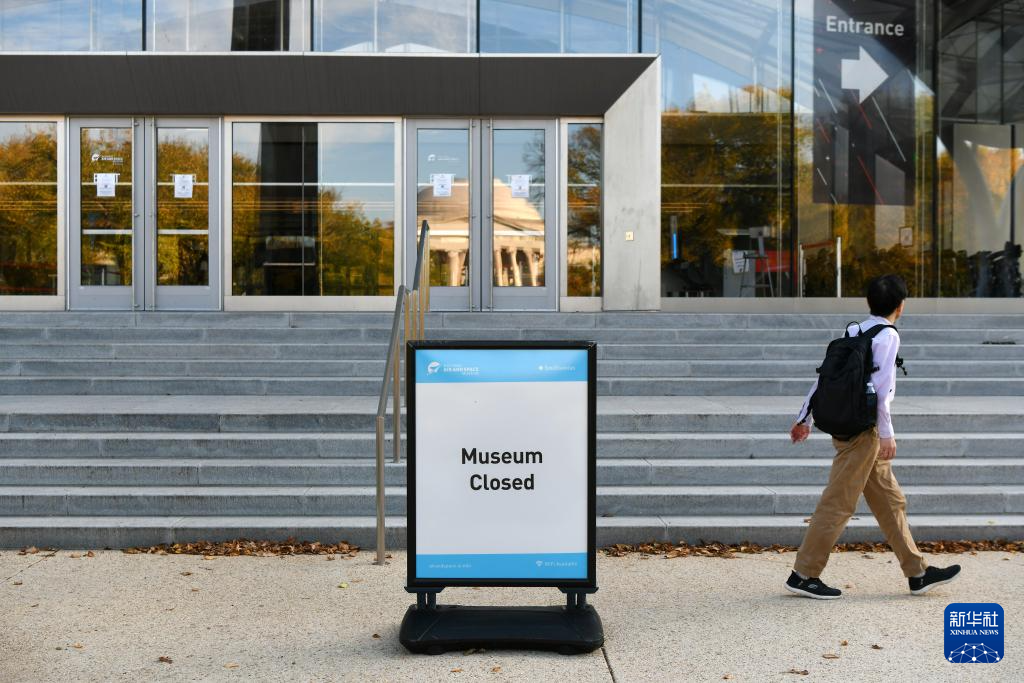10月21日,公告牌显示位于美国华盛顿的美国国家航空航天博物馆因联邦政府“停摆”而关闭。
