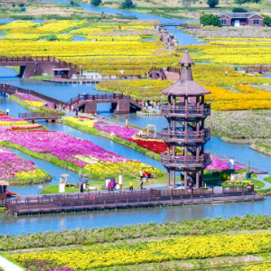10月23日,游客在江苏省兴化市千垛景区赏菊游玩(无人机照片)。