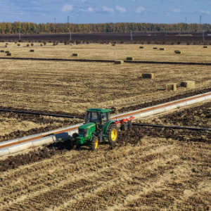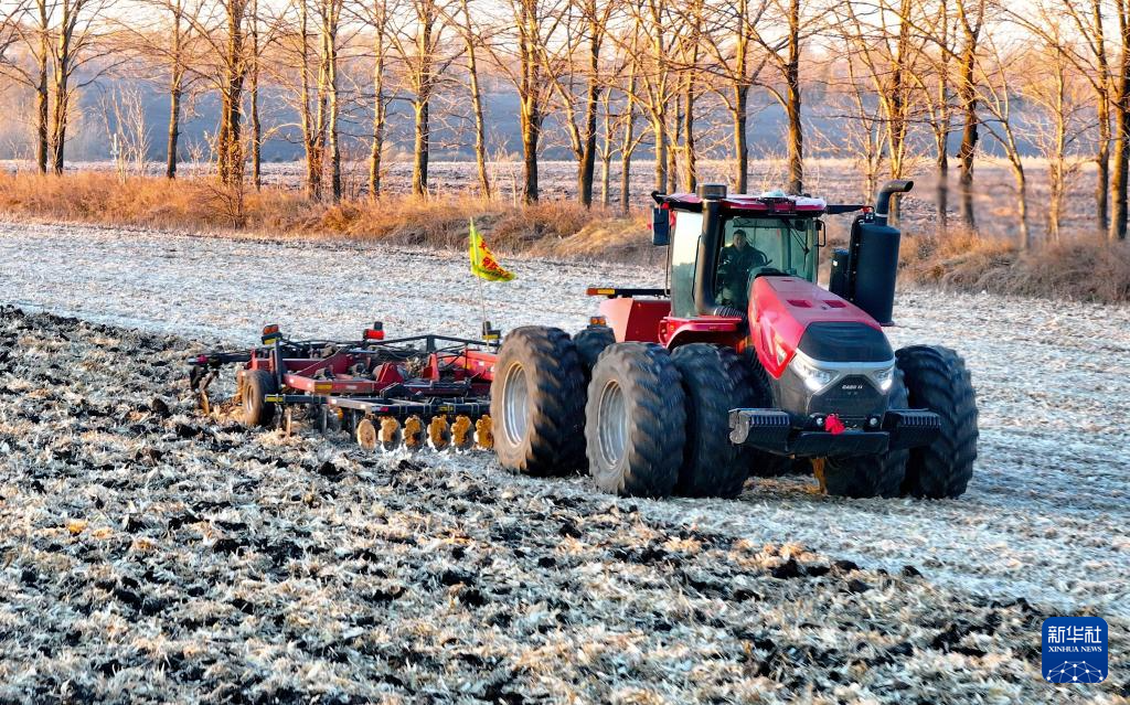 10月23日,农机在黑龙江北大荒农业股份友谊分公司田间进行整地作业 (无人机照片)。