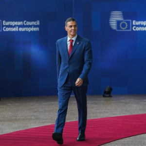 10月23日,在比利时首都布鲁塞尔,西班牙首相桑切斯出席欧盟峰会。