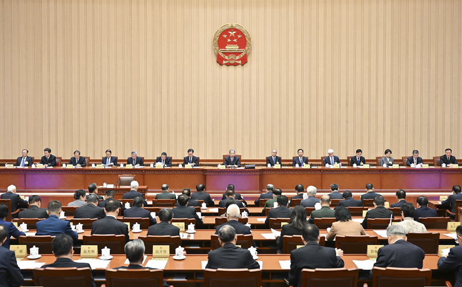10月24日上午,十四届全国人大常委会第十八次会议在北京人民大会堂举行第一次全体会议。赵乐际委员长主持。