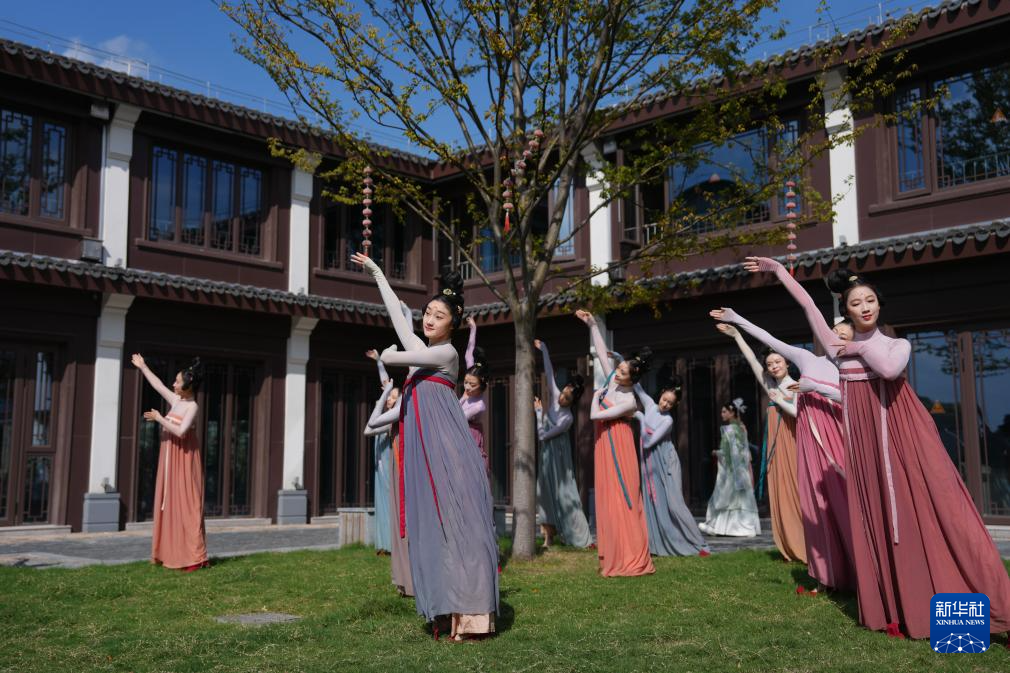 10月24日,浙江歌舞剧院演员在新市古镇表演舞蹈《鹿鸣宴》。