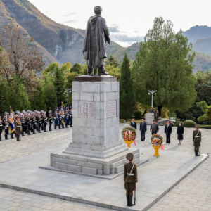 据朝中社25日报道,在中国人民志愿军抗美援朝出国作战75周年之际,朝鲜劳动党总书记、国务委员长金正恩24日参谒位于平安南道桧仓郡的中国人民志愿军烈士陵园,向烈士们表示崇高敬意。