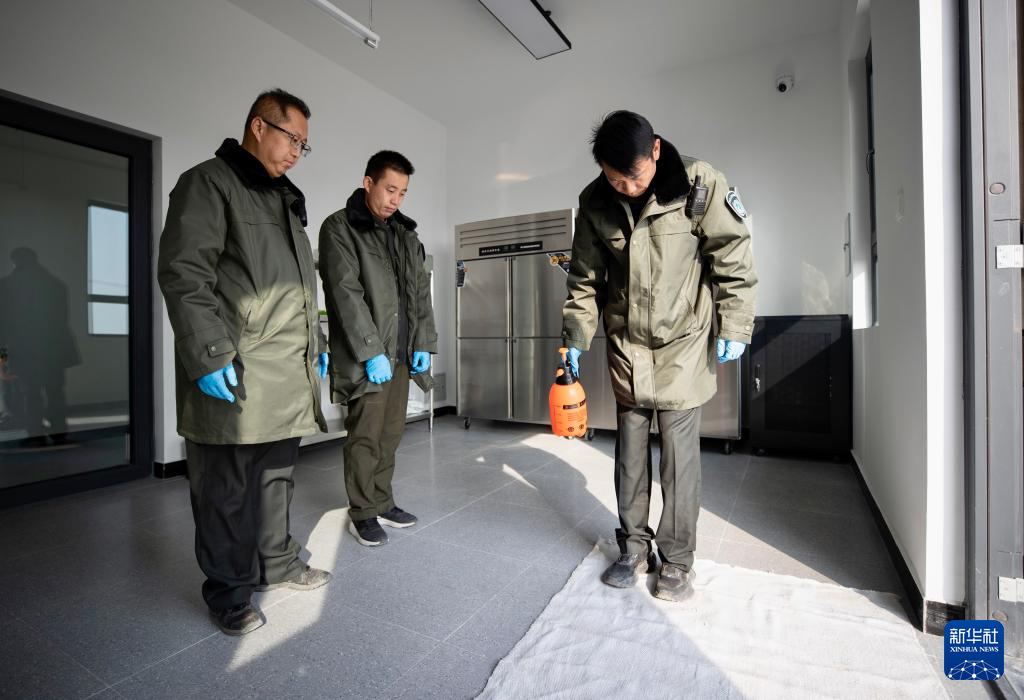 10月24日,在位于宁夏贺兰山国家级自然保护区内的宁夏贺兰山雪豹保护研究基地,工作人员在进行消毒作业。