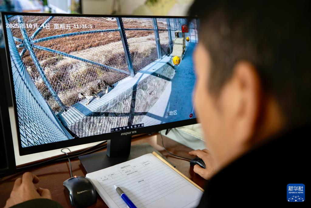 10月24日,宁夏贺兰山国家级自然保护区马莲口管理站工作人员通过监控观察雪豹。