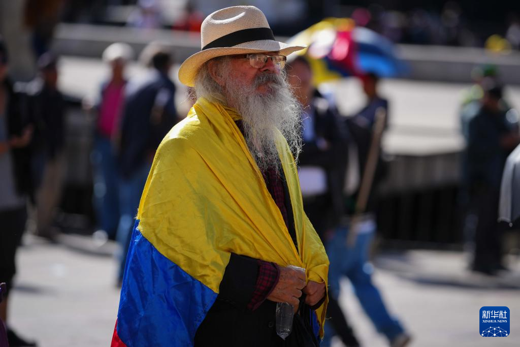 10月24日,在哥伦比亚首都波哥大的玻利瓦尔广场,一名男子身披哥伦比亚国旗。