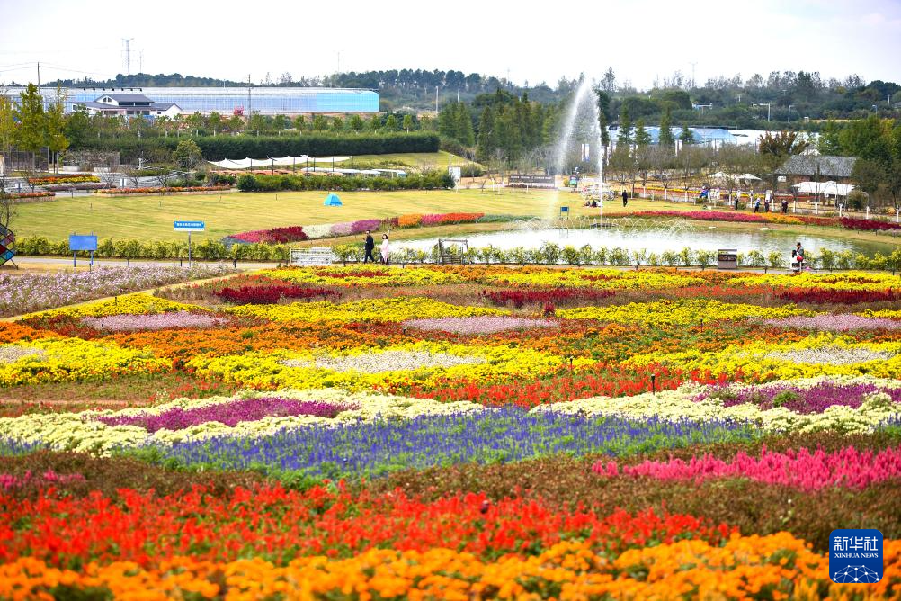 10月25日,游客在江苏镇江句容市的伏热花海庄园内赏花游玩。